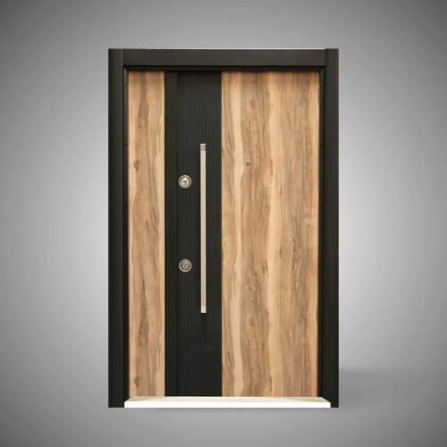 PORTE BLINDEE AVEC CADRE EN FER ET BOND ALUMINIUM EN BAS ET DEUX SERRURES